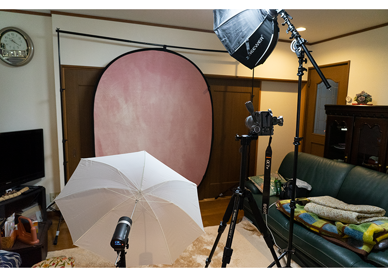 背景や照明を用意して高品質な写真館クオリティの
